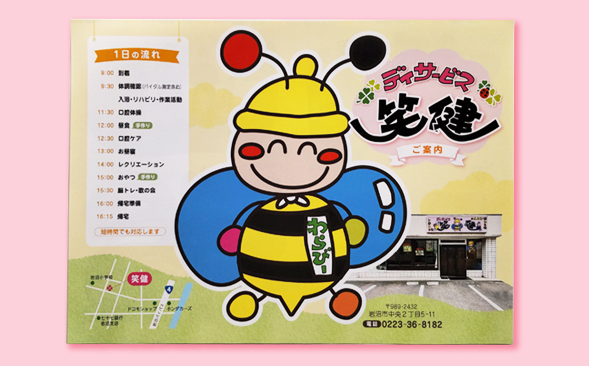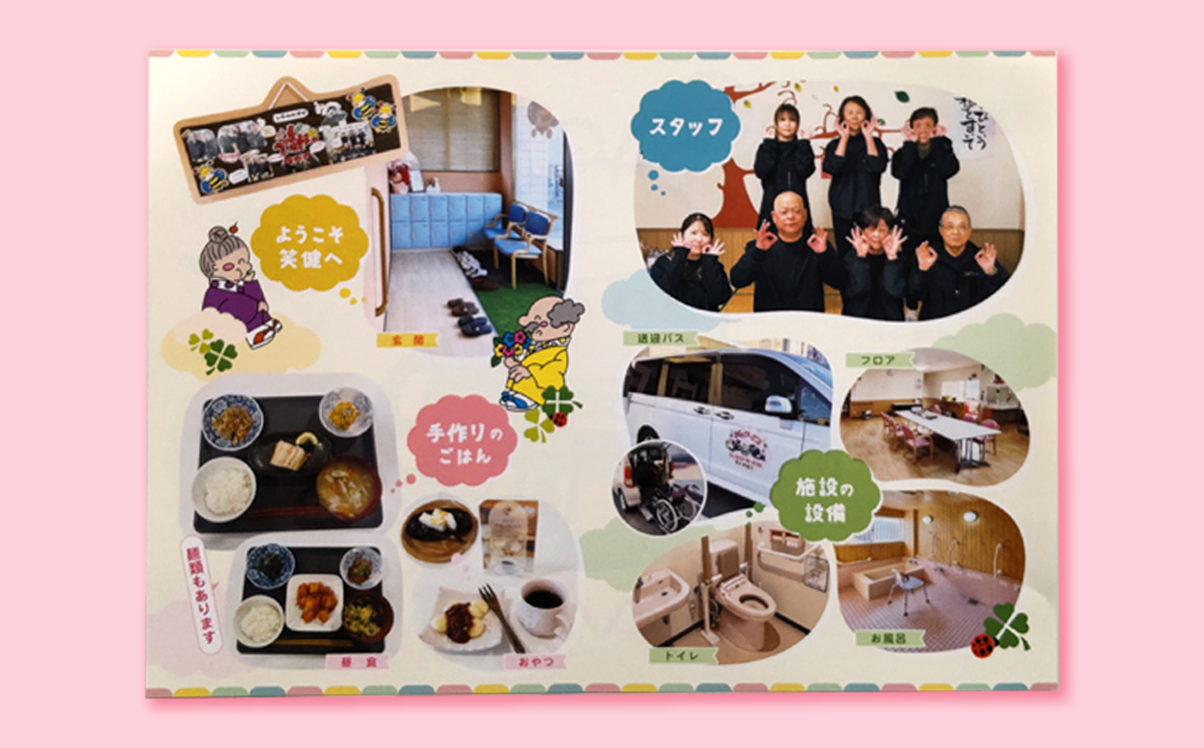 デイサービス笑健様のパンフレットを制作いたしました。