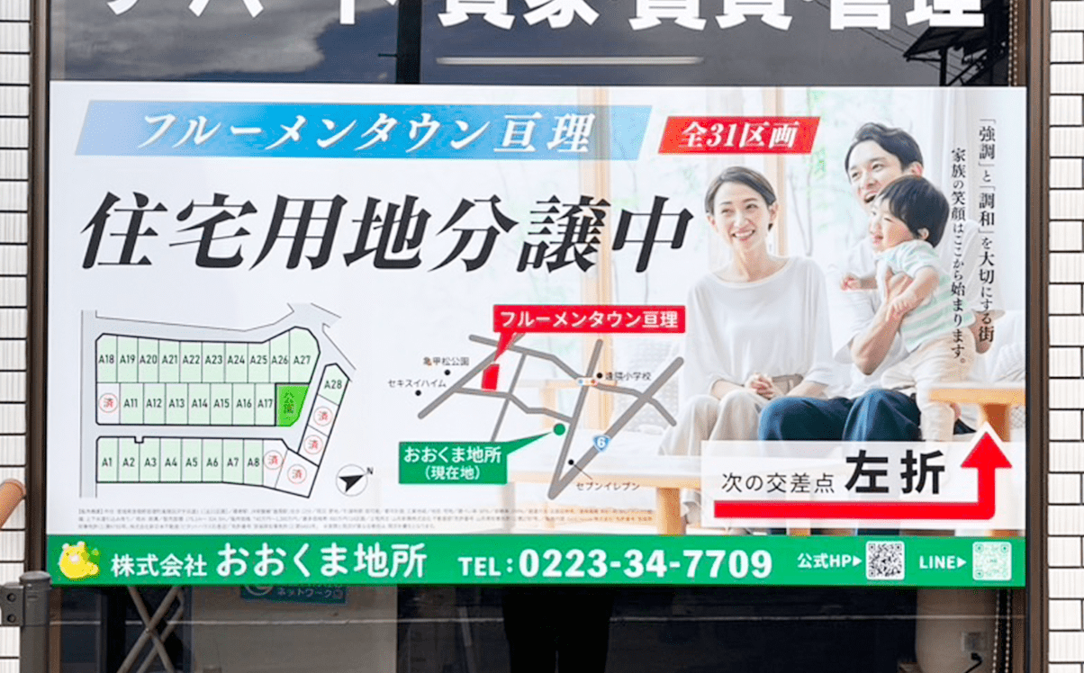おおくま地所様のフルーメンタウン亘理店舗ポスターを制作いたしました。